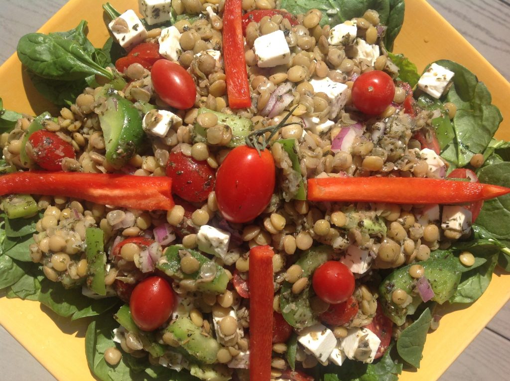 Hearty, crunchy, citrusy and herbaceous, with just a little touch of Sicilian Lemon sweet and a whole lot of flavor: introducing our lentil and feta salad. Served over a bed of baby spinach, this salad is an excellent source of protein, fiber, and iron; a perfectly satisfying and nourishing vegetarian entrée. It is a crowd pleaser as well, so it’s a perfect addition to your summer barbecue, and with flavors that require an overnight soak to blend beautifully, you won’t have to scramble to prepare it at the last minute.