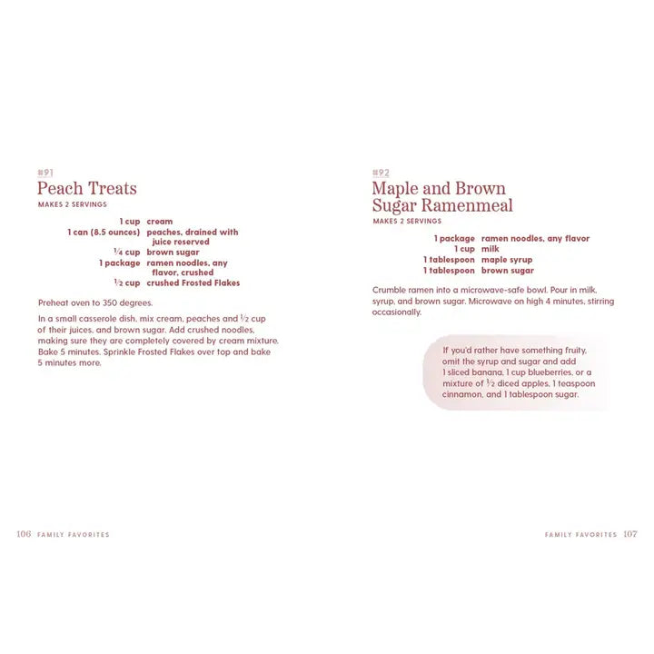 Ramen noodles are fast, easy, filling—and endlessly customizable! Learn how to transform this affordable pantry staple into delicious recipes, including: Creamy Chicken Noodle Soup, Summer Garden Soup, Zucchini Salad, Creamy Beef and Broccoli Noodles, Ramen Burgers, Ham and Cheese Ramen Omelets, Pork Chop Ramen, Tuna Noodle Casserole, Ramen Nachos, and Cheesy Ranch Ramen.