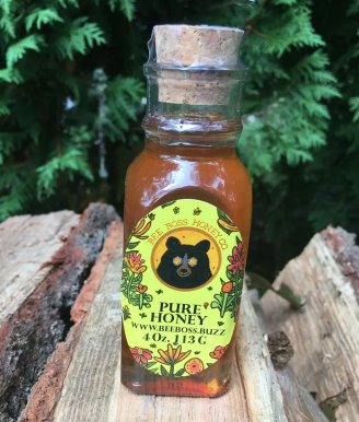 Four ounces of local raw honey from Harwich, MA in this sweet little Muth Jar. Shrink wrapped cork stopper, embossed with old fashioned skep hive and the words “Four Ounces Pure Honey”