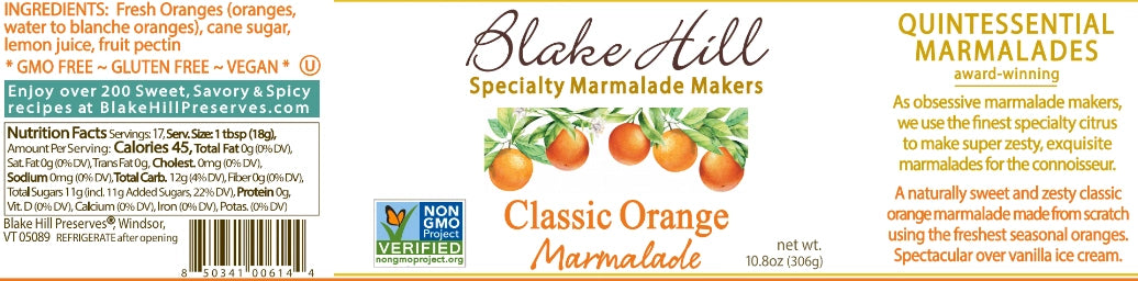 This classic marmalade features the freshest sweet oranges with a traditional fine cut rind. With a wonderful juicy tang, this marmalade is perfect paired with classic cheddar cheese or Parmigiano-Reggiano, makes a delicious salad dressing when whisked into vinaigrette, and a perfect addition swirled into a fudgy brownie.