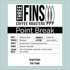 The name comes from the epic movie of the same name. A perfect cup of brewed coffee is like a perfect wave, elusive to find, but once found you want it again and again! We believe we have achieved that with our Point Break, a medium roasted bean, which is richly balanced with no bitter notes with hints of spice, berry and mild chocolate. From the Oberon region of Brazil.