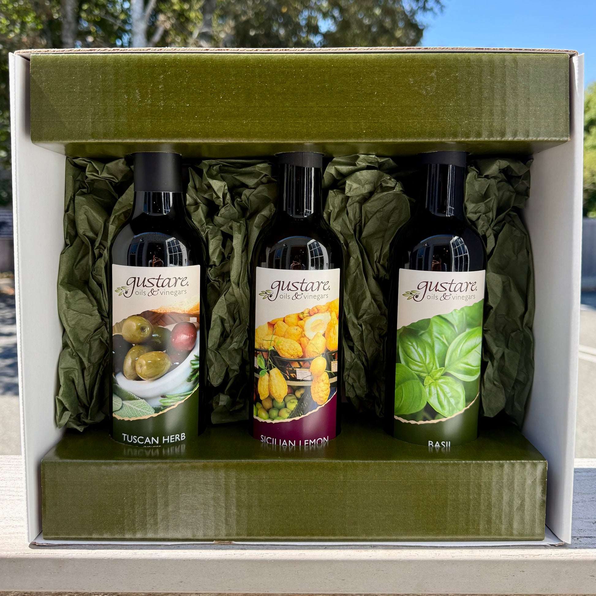 Includes three 375ml bottles tastefully packed in a custom gift box tied with a ribbon.